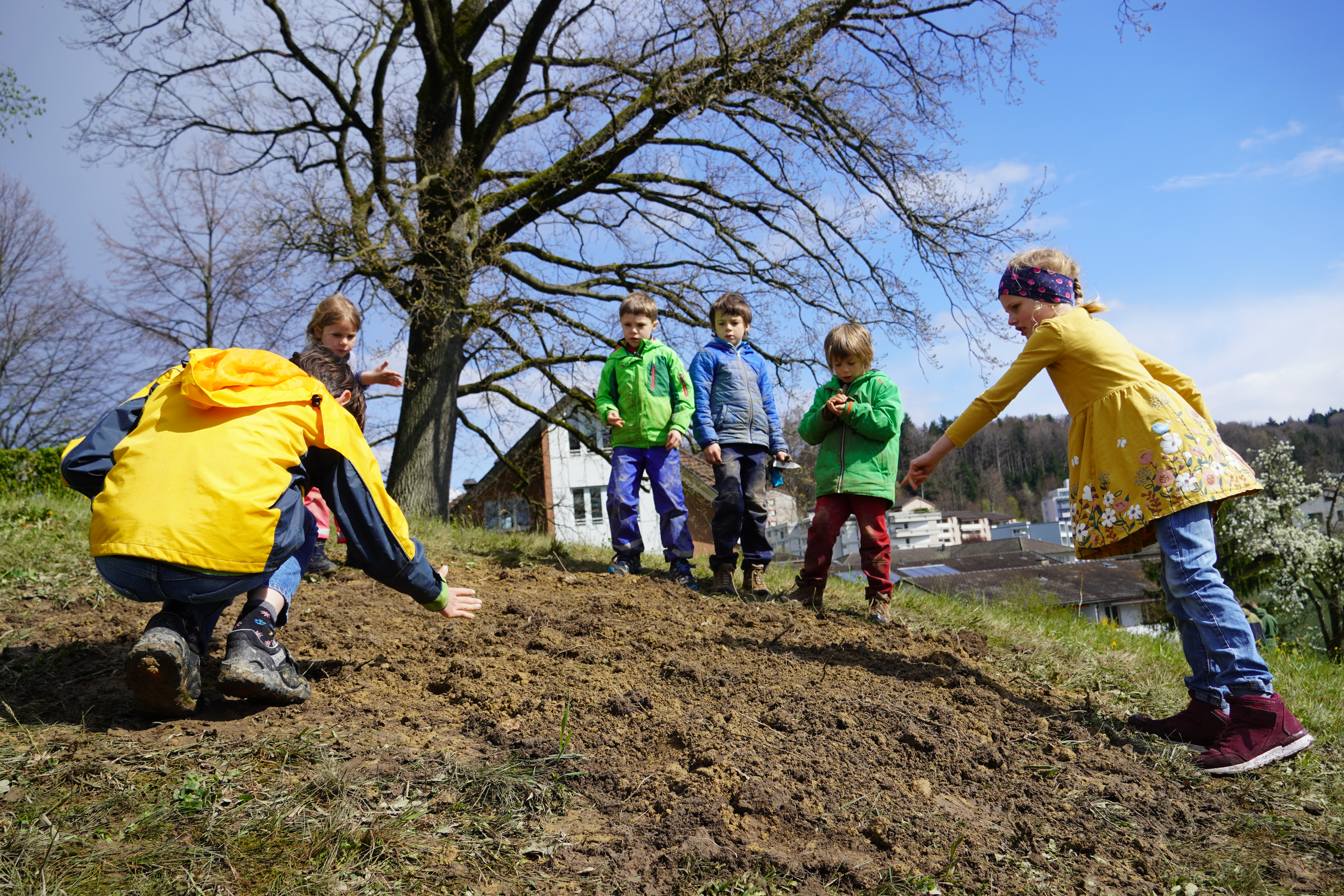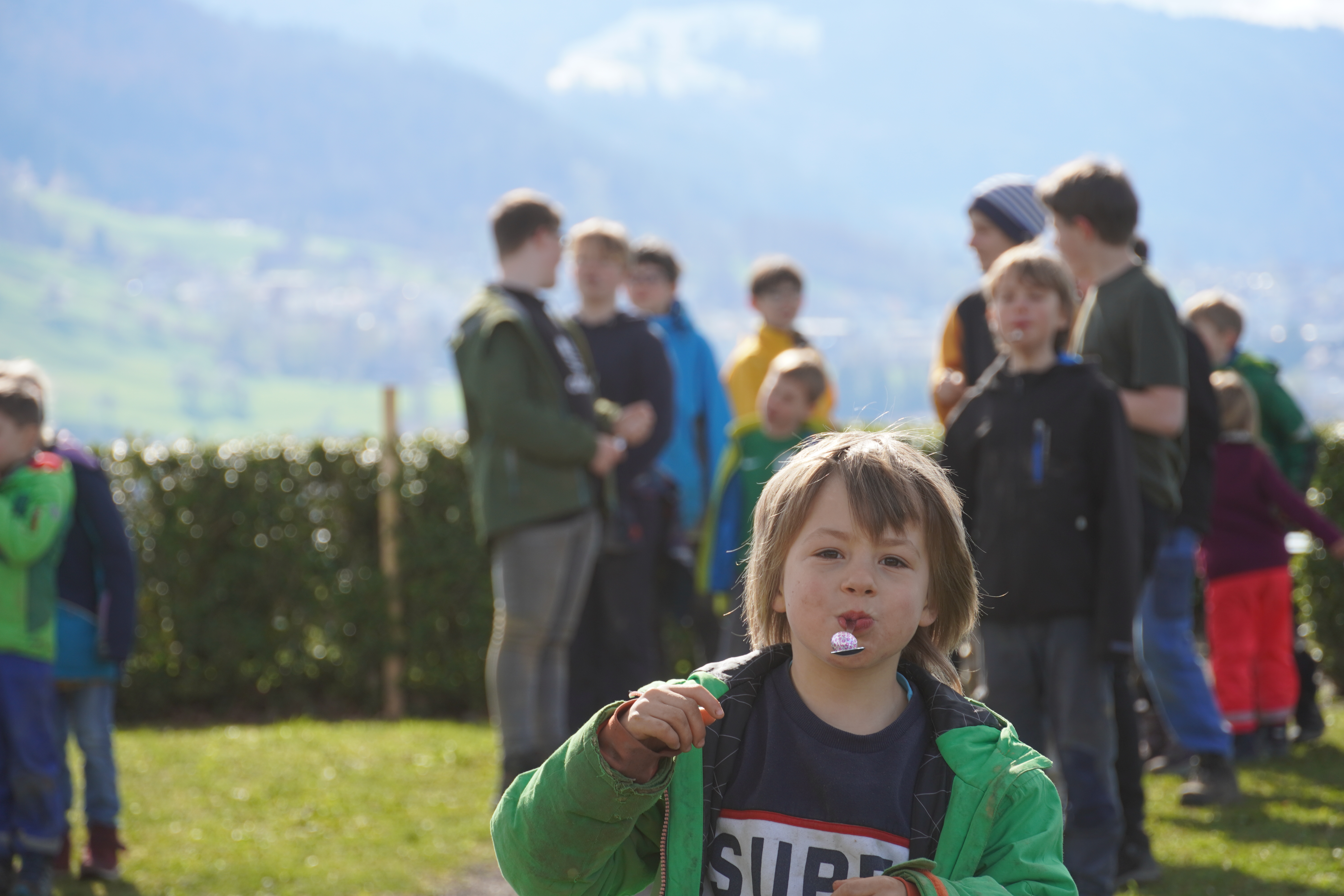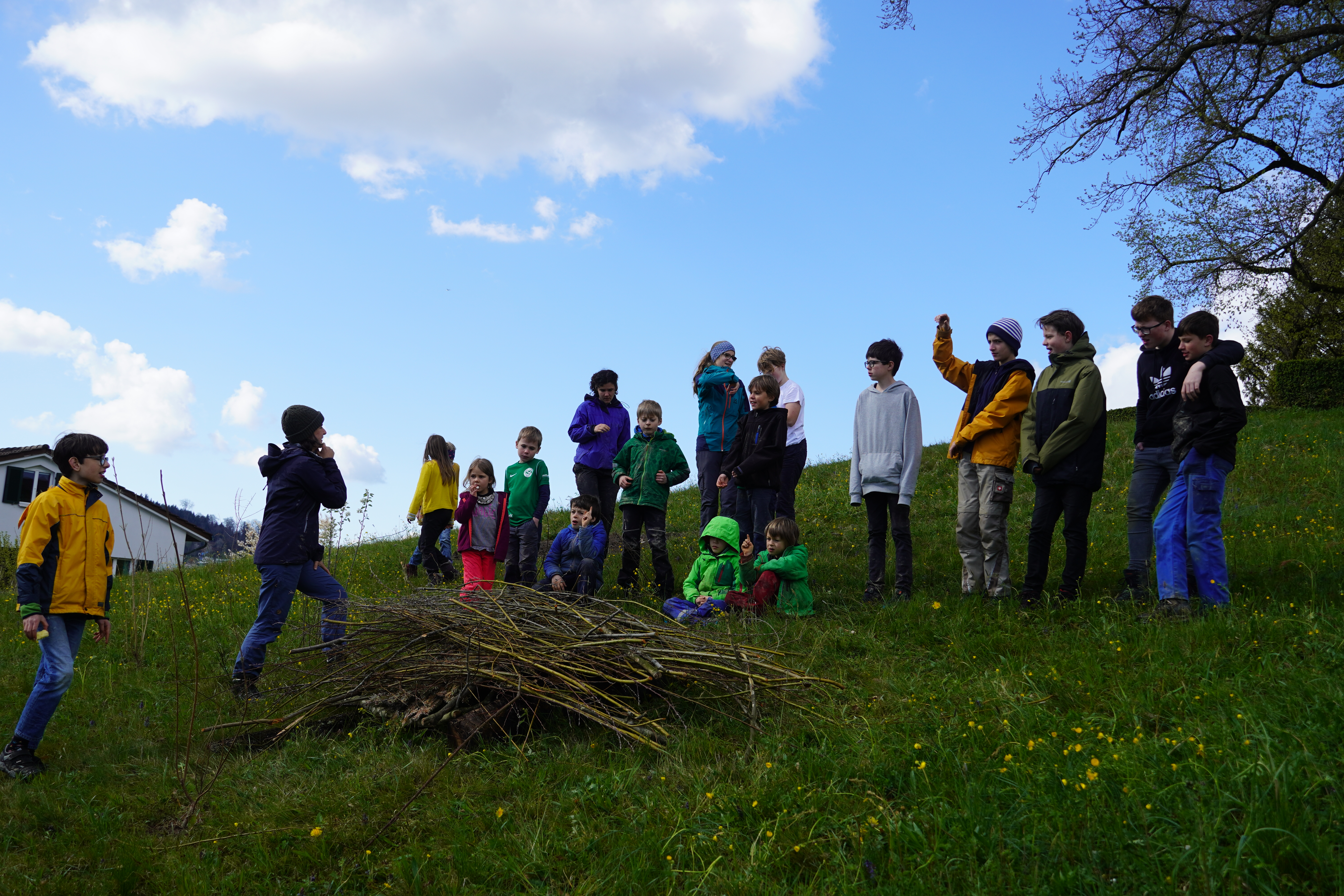 Zum zweiten Mal machten wir uns auf zur Hochrütikuppe für einen Arbeitseinsatz. Auf uns wartete bereits ein riesiger Sandhaufen, welcher wir als Nistplatz für Wildbienen ans richtige Ort transportierten. Zudem pflanzten wir verschiedenste einheimische Stauden. Während wir unsere Arbeit bestaunten, versteckte der Osterhase feine Schoggieier, welche wir anschliessend suchen konnten.