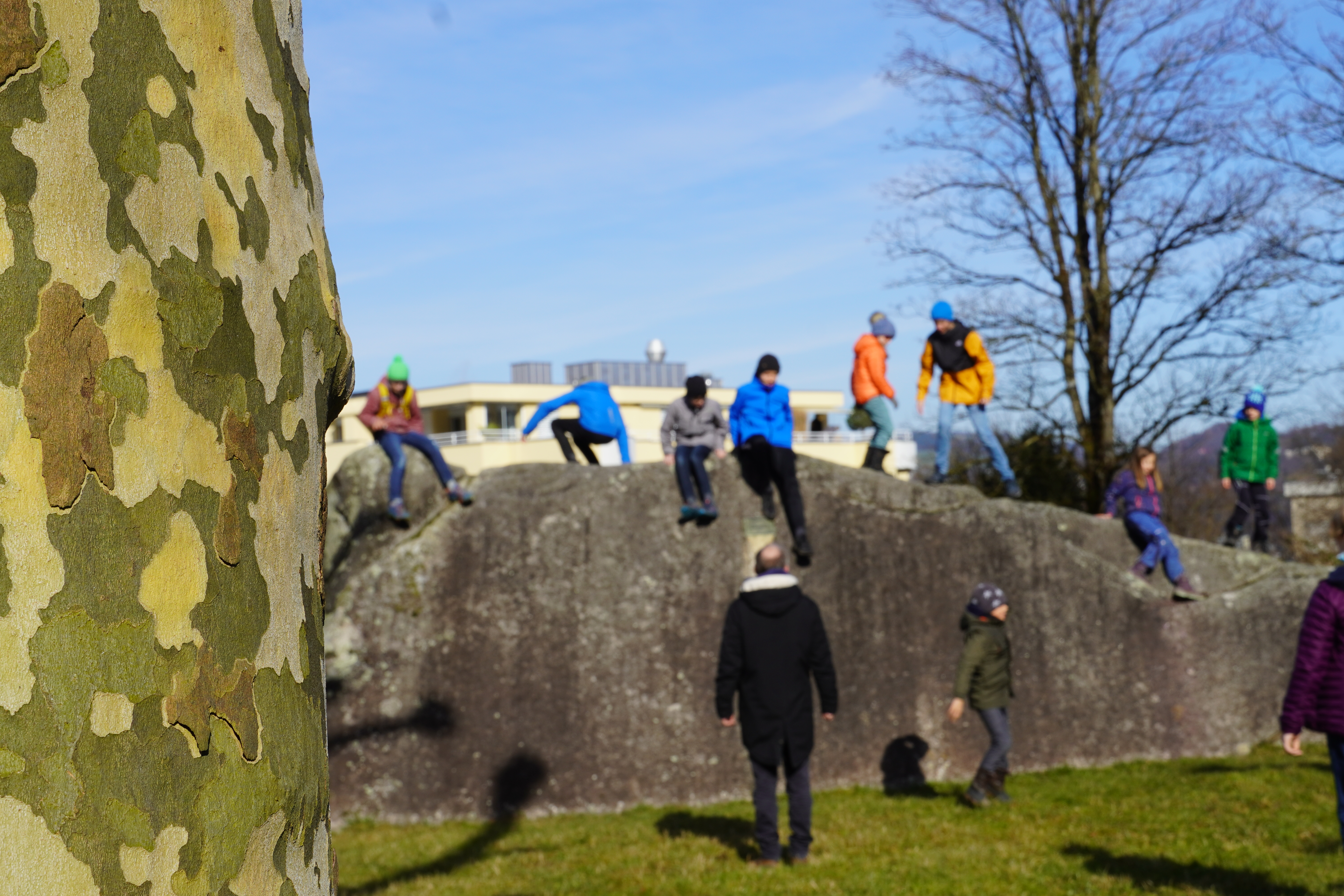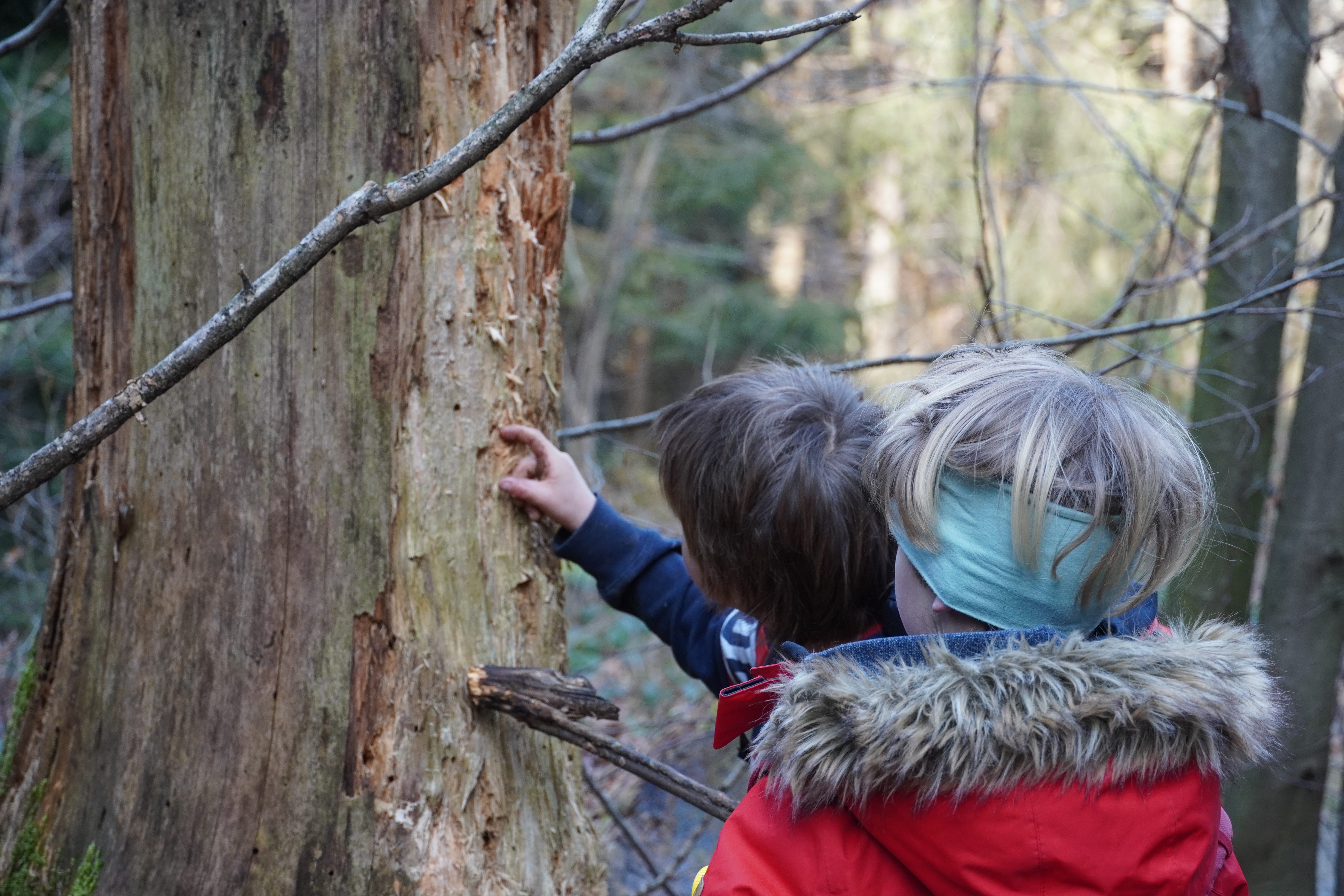 Bei kaltem Winterwetter aber strahlendem Sonnenschein besuchten wir den Bireggwald. Der Hasel und der Tierlibaum blühten bereits und ein Distelfink hat uns mit seinem Gesang auf Hirtenhof zusätzlich begrüsst. Zuerst erkletterten wir den imposanten Erratiker und staunten darüber, dass vor tausenden von Jahren der Gletscher ein solch grossen Stein transportieren konnte. Ein toller und natürlicher Spielplatz.Im Bireggwald trafen wir auf Spuren vom Eichhörnchen, Reh, Waldmaus und vom Buchdrucker; die Naturdetektive staunten, was sich alles im Wald entdecken lässt. Einige hörten sogar das Hämmern vom Specht; jedenfalls haben wir seine Wohnungen in den stehenden Totholzbäumen gut entdecken können. Rasante Waldspiele mit viel Power lockerten das Programm auf. Glücklich, unfallfrei und zufrieden fuhren wir mit dem Bus wieder zurück in die Stadt.