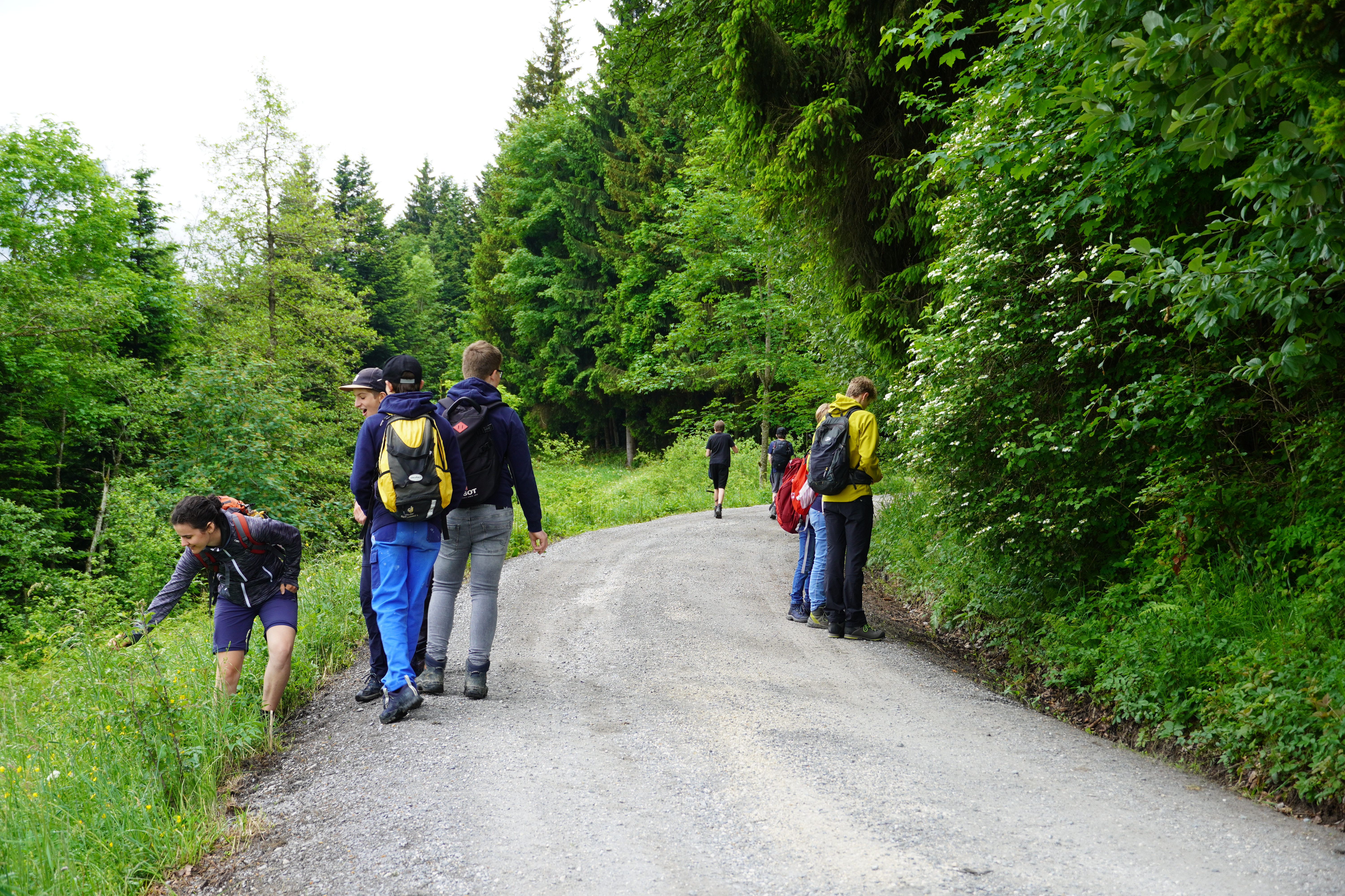 Wir trafen uns noch etwas müde aber aufgeregt am Bahnhoftorbogen Luzern und gingen aufs Postauto in Richtung Eigenthal. Von der Haltestelle Holderchäppeli aus wanderten wir los. Etwas weg von der Strasse lernten wir uns mit einem Spiel besser kennen. Wir teilten uns in Gruppen auf, in welchen wir nach zugeteilten Pflanzen Ausschau halten sollten. Wir wanderten und wanderten und wunderten uns, wo der Pausenplatz ist – wir sind doch glatt auf falschen Wegen gewesen, denn wir waren beinahe schon bei der Mittagsstelle. Was? Schon fast halb drei? Bei der Brätelstelle angekommen durften wir essen und auf dem Kriensereggspielplatz spielen. Da wir die Pflanzen unterwegs zu lange genau angeschaut haben, hatten wir keine Zeit mehr um nach Horw zu laufen. Stattdessen konnten wir noch etwas länger auf dem Spielplatz herumtoben und dann mit den Gondeln und dem Bus nach Hause gehen.